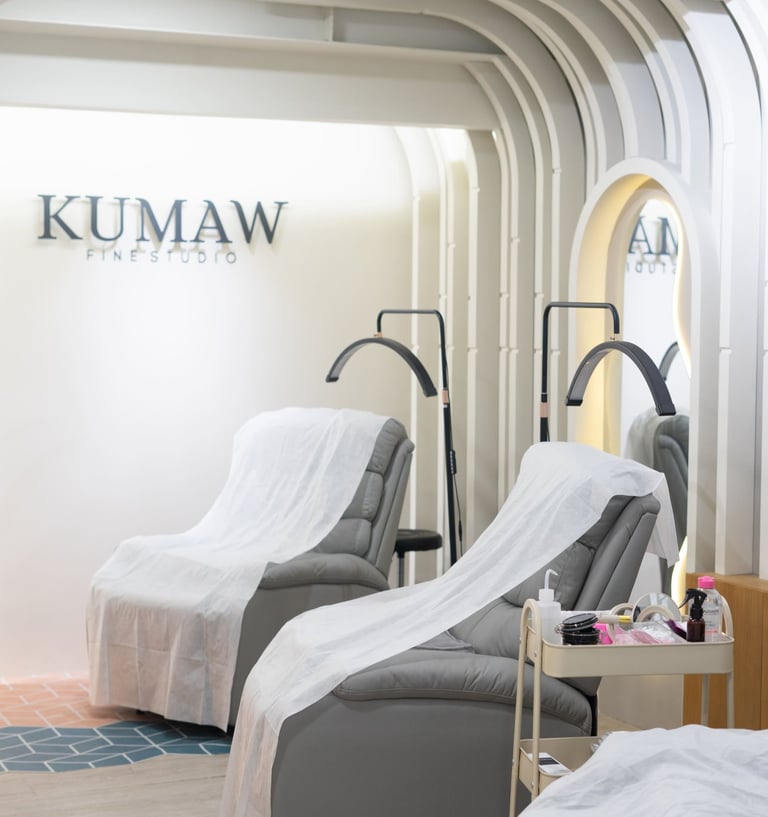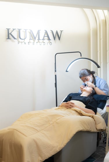 KUMAW adalah studio eyelash spesialis natural #1, sehingga menggunakan bulu yang terlihat seperti bulmat asli, dan tiap helai bulmat asli ditempel 1 helai bulu extension, sehingga terlihat begitu Cantik dan Natural looks